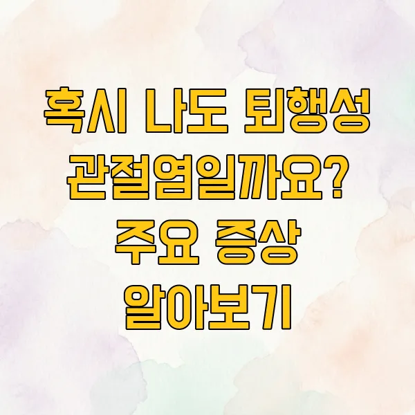 안녕하세요! 요즘 혹시 무릎이나 손가락 관절이 뻐근하고 불편하게 느껴지시나요? 많은 분들이 겪는 흔한 고민 중 하나가 바로 퇴행성 관절염인데요.