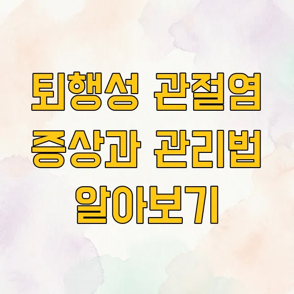 관절이 시큰거리고 욱신거리는 통증은 참기 힘든 일상이죠! 퇴행성 관절염은 노화와 밀접한 관련이 있지만, 생활 습관 개선과 올바른 관리만으로도 충분히 증상을 완화하고 삶의 질을 높일 수 있답니다.