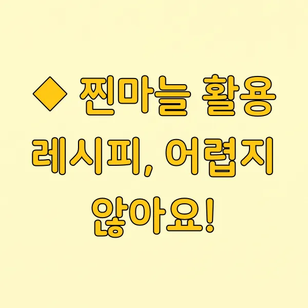 사실 찐마늘은 그냥 그대로 먹어도 맛있지만, 요리에 활용하면 더욱 풍성한 맛을 즐길 수 있어요. 찐마늘효능은 그대로 살리면서 맛까지 잡는다면 금상첨화겠죠?